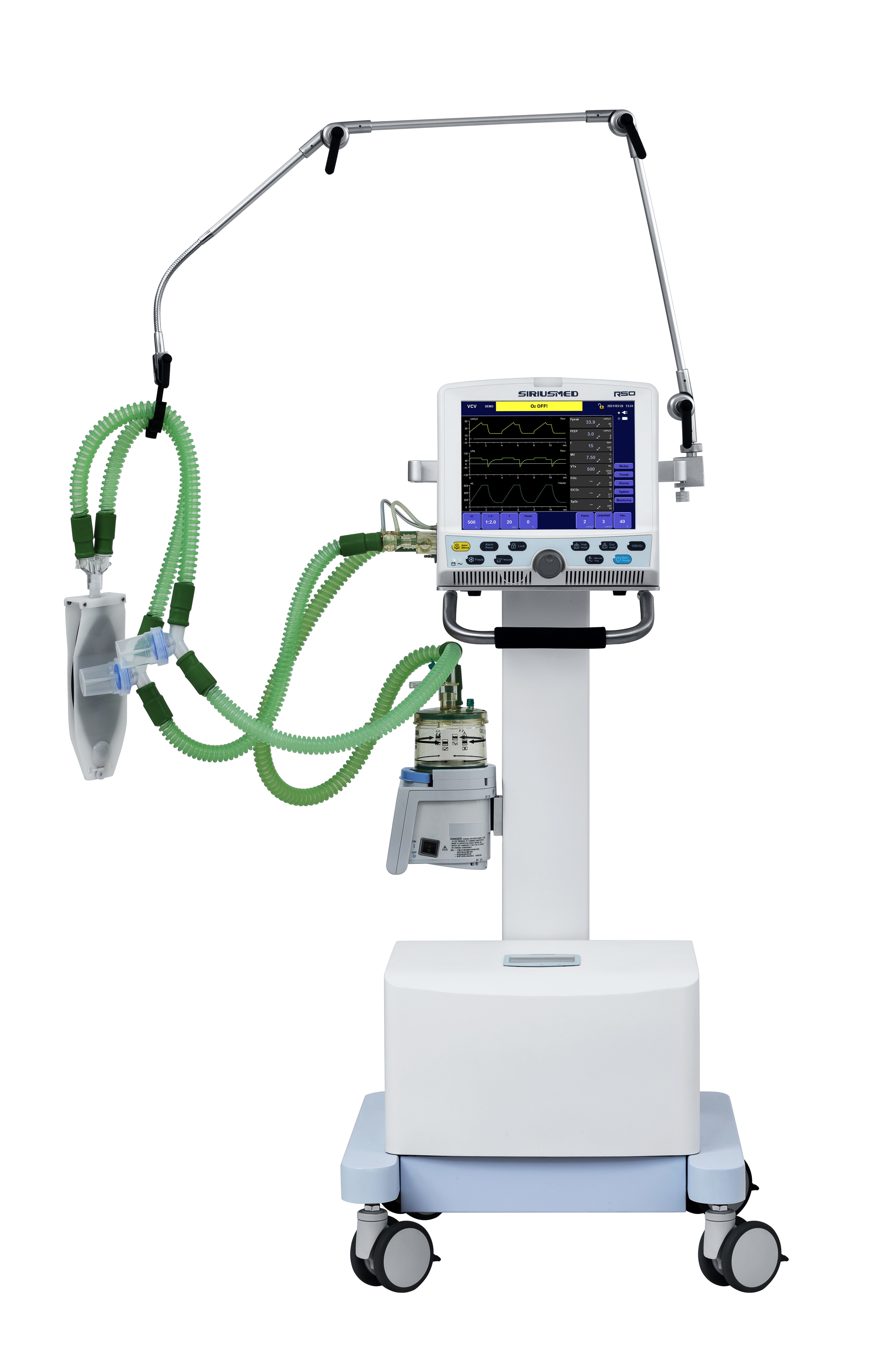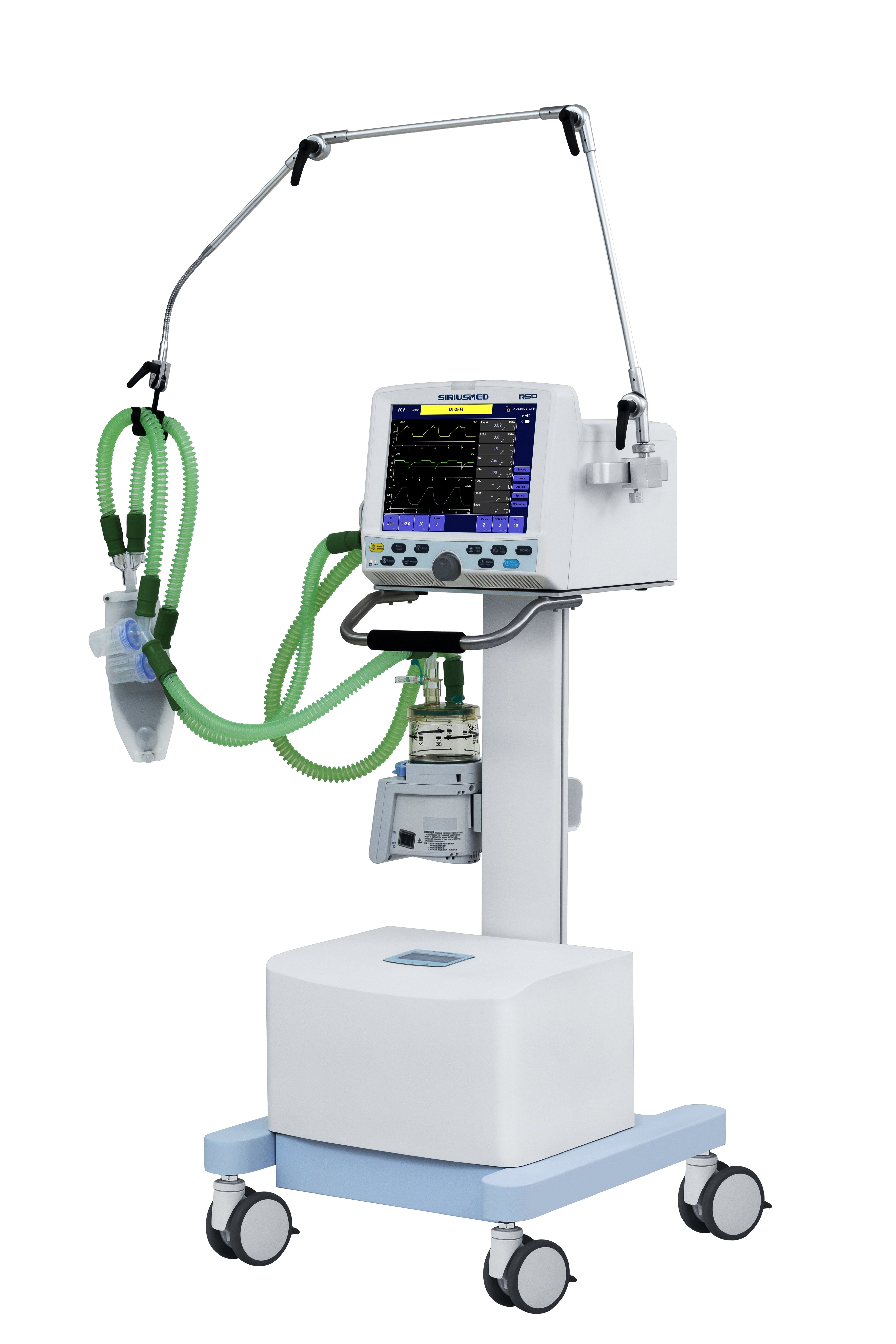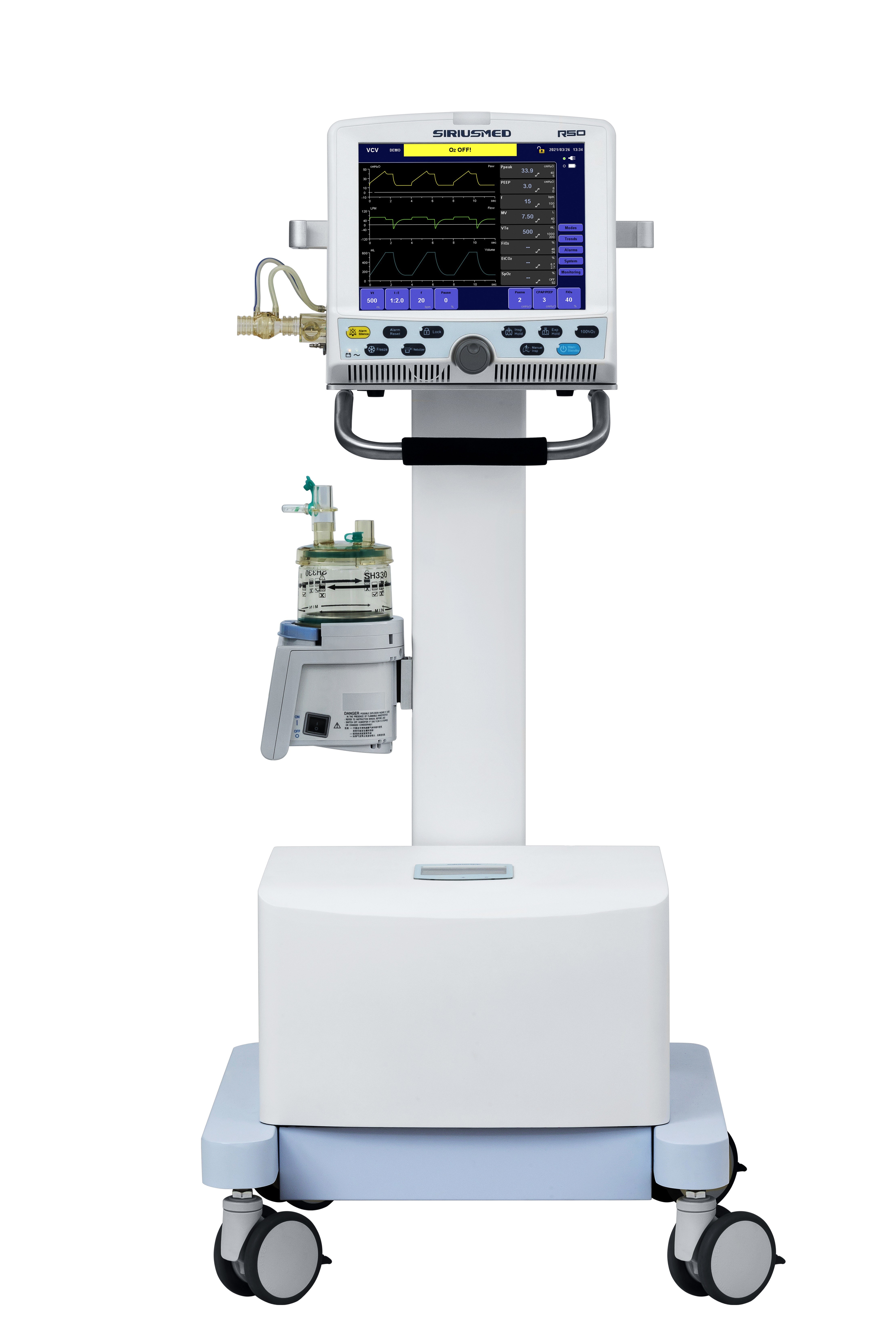 वायवीय रूप से संचालित और इलेक्ट्रॉनिक रूप से नियंत्रित आईसीयू वेंटिलेटर