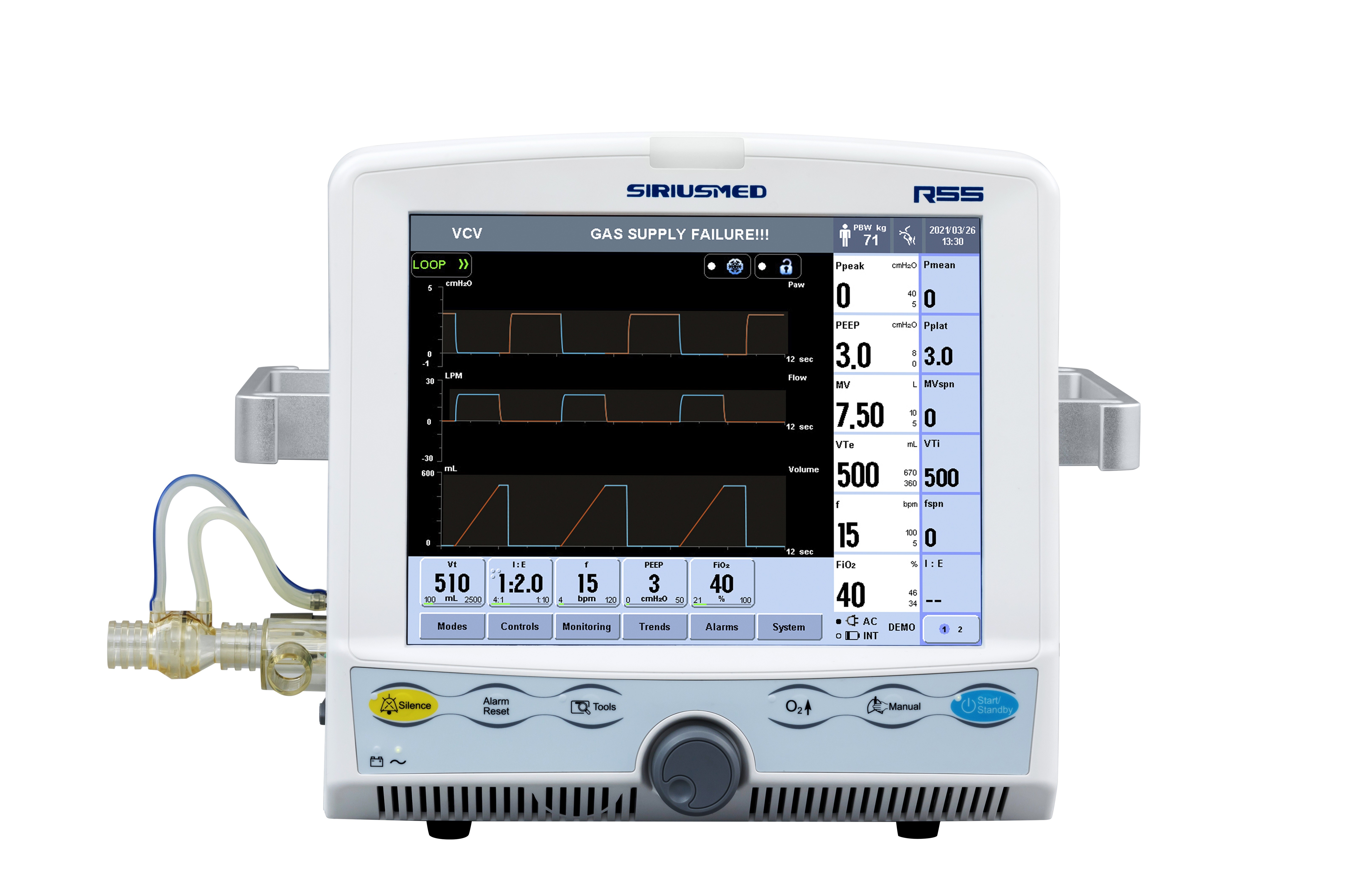 • वेंटिलेशन के पर्याप्त तरीके:वीसीवी, पीसीवी, सिमवी-वीसी+पीएसवी, सिमवी-पीसी+पीएसवी, स्पॉट/सीपीएपी+पीएसवी, बैकअप, मैनुअल (पीआरवीसी, वीएस, एनआईवी-पीसी, एनआईवी-सीपीएपी, डुओफसिक+पीएसवी, एपीआरवी+पीएसवी, वीएस के लिए वैकल्पिक)